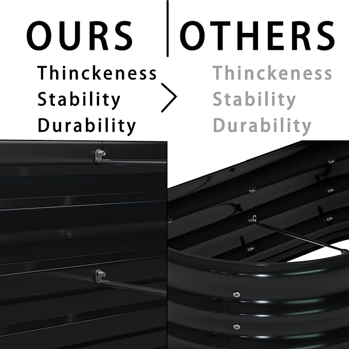 - EASY ASSEMBLE: With upgraded screws and heavy duty middle rods, just need few minutes to setup your new raised garden bed! Please wear the gloves we provided before installation.