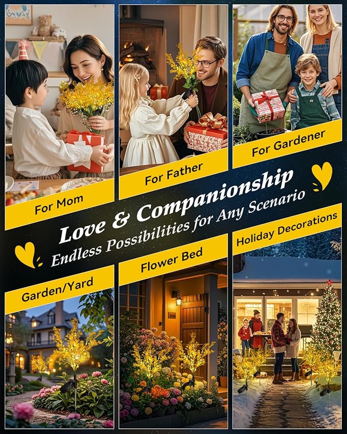 - 【Special Cole Blossoms Solar Flowers 】 Neporal solar flowers outdoor waterproof with high-quality, fade-resistant simulated plastic material. The solar garden lights add a romantic touch to your garden at night and look like real flowers during the day, providing vibrant garden decoration. The stems and leaves are adjustable, allowing you to DIY garden solar lights into different angles and postures.