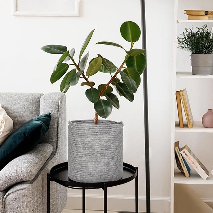 - Versatile: Perfect for both indoor settings, this woven rope plant basket enhances the beauty of tree pots, planters, and decorative flowers. Ideal for 7-10 inch pots. it can also be used for storing toys, shoes, towels, crafts, and other small items. Its round shape makes it a great decorative storage solution.