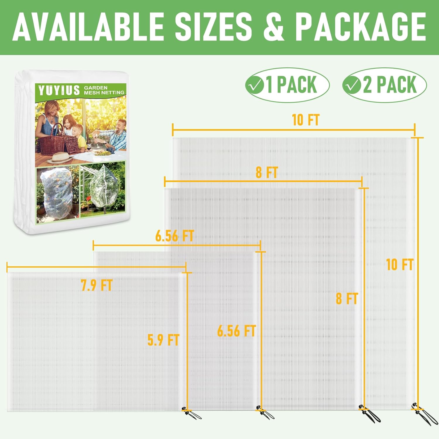 - Thicker 60 Mesh Netting - The bird netting for fruit trees is available in high density 60 mesh, which provides the effective protection with your plants and trees from animals and insects, such as cicadas, lady bugs, rabbits, birds, poultry, etc