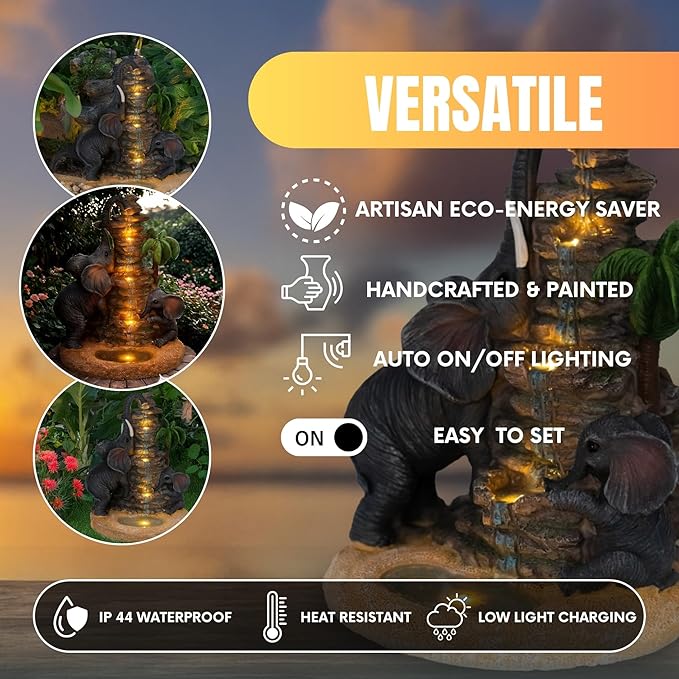 - Gift/Symbolic Meaning --> Ideal Gift for Nature Lovers/Relaxation: Elephant and water fountain themes resonate with nature and relaxation.