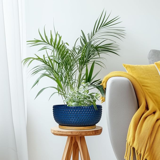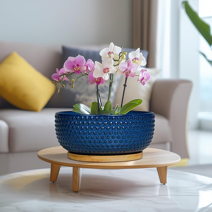 Bonsai Pots - 8 Inch Ceramic Pots for Succulent Plants & Bonsai Tree, Planter with Drainage Hole and Saucer, Modern Round Decorative Flower Planters, House Decor, GIFS for Women Man, Blue
