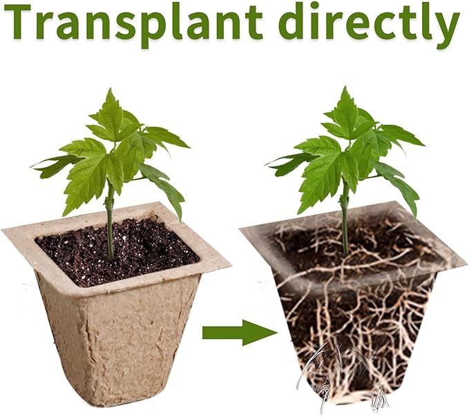- 【Easy Transplantation】The biodegradable seedling starter trays make transplantation stress-free and straightforward. When your seedlings are ready to be transferred to the garden, you can plant the entire pot directly into the soil. This reduces root shock and promotes stronger plant growth, ensuring a higher survival rate for your plants.