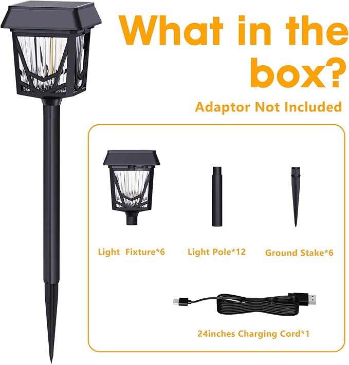 - Adjustable Hight & Simple Installation: Simply connect one or two poles to the outdoor lights and then insert the pathway light vertically into the sunny ground or lawn for optimal charging and lighting. The adjustable height solar lights outdoor pathway can greatly meet your different lighting and decoration needs.
