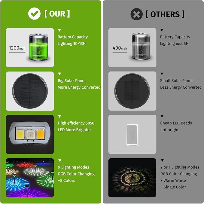 - Weather resistance & Durable Solar Lights Outdoor - IP67 waterproof led can keep this Solar garden decorations working perfectly for outdoor, high-quality solar yard lights are durable and has a longer service life than other solar pathway lights for outside.