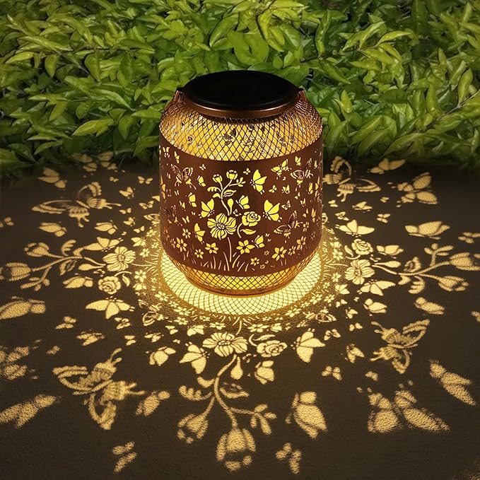 - Perfect Garden Decorative: solar lanterns adopts hollow out design and Butterfly pattern.Solar lanterns could project beautiful patterns, creating a gorgeous and warm atmosphere.Perfect for decorations for,patio,lawn,backyards,porch and many other scenes.When lit at night, adding a touch of color to your garden.