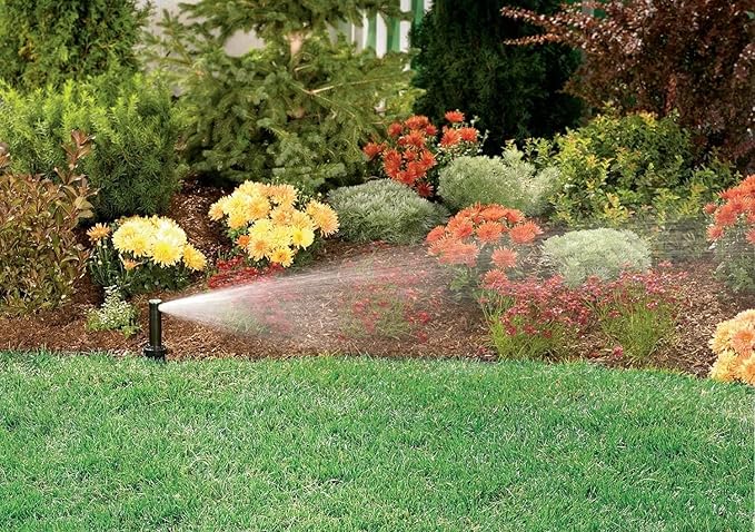 - Spray adjusts from a 15-25 ft. radius in a part- or full-circle pattern