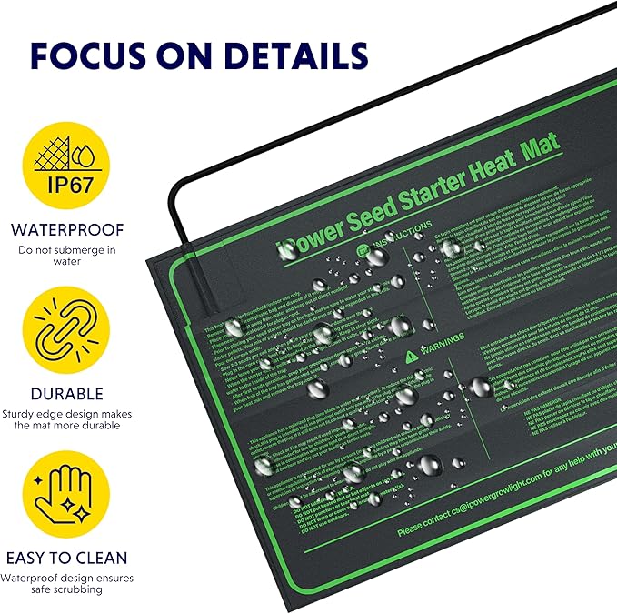 - Stable and uniform heat: the thickened heat conducting wire is evenly laid on the heating pad the heat conduction is fast and the temperature is balanced, to avoid the uneven temperature of the heating pad to damage the seed germination.