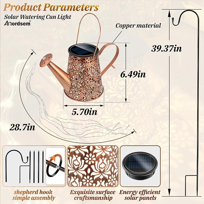 Watering Can Light Solar Powered: Garden Lights Waterproof Outdoor Yard Decoration - Flower Lanterns Hanging Patio Proch Pathway Decor - Gardening Birthday Gifts for Women Mom Wife Grandma