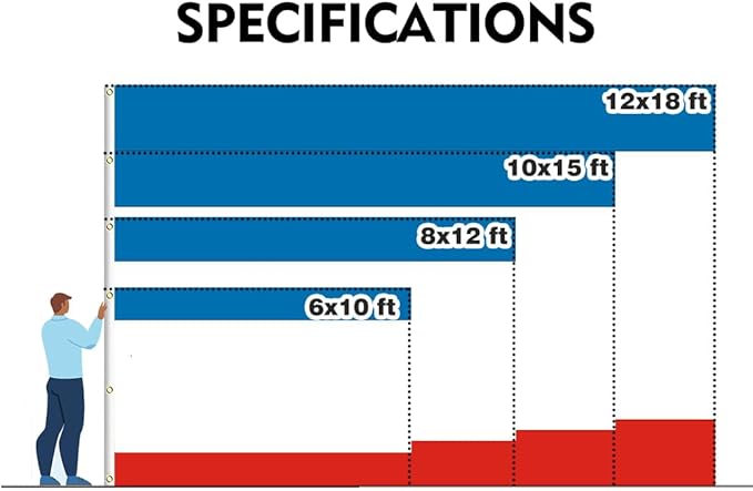 - Material: Polyester. Size: 2x3/3x5/4x6/5x8/6x10/8x12/10x15/12x18 feet
